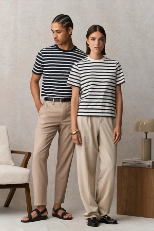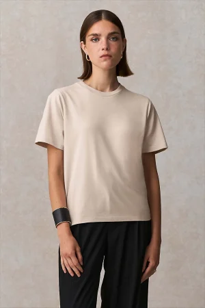 Combina rápida transferência de humidade, sensação de frescura e fácil manutenção. O seu tecido denso, estável e resistente garante: um aspeto impecável, menos vincos e cores duradouras. Toque mais suave, cair limpo, capacidade de impressão perfeita.